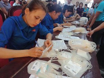 Thanh niên Hà Trung hăng hái tham gia hiến máu cứu người