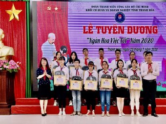 Sáng ngày 23/7/2020, Ban Thường vụ Đoàn Khối Cơ quan và Doanh nghiệp tỉnh Thanh Hoá long trọng tổ chức Lễ tuyên dương “Ngàn hoa việc tốt” năm 2020. Tới dự chỉ đạo buổi lễ có các đồng chí Thường trực, Ban Thường vụ, Lãnh đạo các Ban xây dựng Đảng, Lãnh đạo các tổ chức đoàn thể Khối Cơ quan và Doanh nghiệp tỉnh; đại diện Ban Thường vụ Tỉnh đoàn, Hội đồng Đội tỉnh Thanh Hoá; đại diện các đơn vị tài trợ đồng hành cùng chương trình.