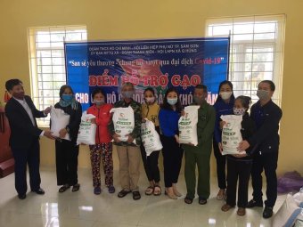 Thanh niên thành phố Thanh Hóa phát gạo cho người dân bị ảnh hưởng bởi dịch Covid-19.