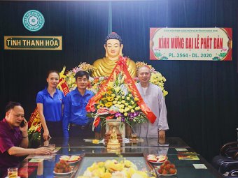 Nhân dịp Đại lễ Phật đản 2020 - Phật lịch 2564, Ban Thường vụ Tỉnh đoàn, Hội LHTN tỉnh Thanh Hóa do đ/c Lê Văn Châu Phó Bí thư Thường trực Tỉnh đoàn, Chủ tịch Hội LHTN tỉnh làm trưởng đoàn đã tới thăm, chúc mừng Ban Trị sự Giáo hội Phật giáo tỉnh Thanh Hóa cùng các Trụ trì chùa Đại Bi (Tp.Thanh Hóa), chùa Vạn Linh (Quảng Xương), chùa Đót Tiên (Tĩnh Gia).