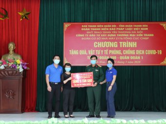 Chiều 23-3, tại thị xã Bỉm Sơn, Ban Thanh niên Quân đội, Tỉnh đoàn Thanh Hóa, Đoàn thanh niên Báo Pháp luật Việt Nam, Quỹ trao tặng yêu thương Hà Nội, Công ty Đầu tư xây dựng Thương mại Sơn Trang, Đoàn cơ sở Nhà máy Z176/Tổng cục Công nghiệp Quốc phòng đã phối hợp tổ chức chương trình thăm, tặng quà Sư đoàn 390, Quân đoàn 1. Đây là đơn vị đang thực hiện nhiệm vụ cách ly công dân trở về từ vùng dịch Covid-19.