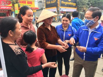 Huyện đoàn Thiệu Hóa tổ chức phát khẩu trang, nước rửa tay miễn phí cho người dân