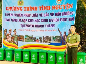 Ngày 12/10/2019, BCH Đoàn Công an tỉnh chủ trì, phối hợp với phòng Cảnh sát ĐTTP về môi trường - Công an tỉnh; Công an huyện và Huyện đoàn Thạch Thành tổ chức chương trình Tuyên truyền pháp luật về bảo vệ môi trường, Trao tặng xe đạp đồng hành cùng các em đến trường tại địa bàn huyện Thạch Thành.