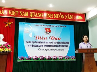 Thực hiện Chương trình công tác Đoàn và phong trào Thanh thiếu nhi năm 2019. Ngày 11/9/2019, Ban Thường vụ Thị đoàn Bỉm Sơn tổ chức Diễn đàn “Tuổi trẻ Bỉm Sơn thực hiện Di chúc của Chủ tịch Hồ Chí Minh và tuyên dương gương thanh niên tiên tiến làm theo lời Bác”.