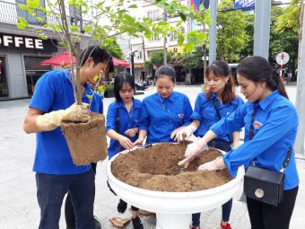 Thanh niên thành phố Thanh Hóa trồng hoa giấy góp phần xây dựng đô thị văn minh