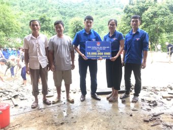 Sáng 3 - 7, Huyện đoàn Quan Sơn, Đoàn xã Sơn Hà tiếp nhận đoàn tình nguyện Liên chi đoàn khoa Ngoại ngữ, ĐH Hồng Đức lên tình nguyện.