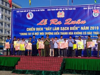 Hưởng ứng chiến dịch quốc gia phòng chống rác thải nhựa, sáng ngày 29/6/2019, tại bãi biển du lịch Hải Hòa, Huyện đoàn Tĩnh Gia – Đoàn Công an Tỉnh – Đoàn sở tài nguyên và môi trường tỉnh Thanh Hóa ra quân chương trình hãy làm sạch biển năm 2019 với chủ đề “chung tay vì một môi trường biển Thanh Hóa không có rác thải nhựa”. Tham dự lễ ra quân có đồng chí: Nguyễn Hải Trung – UVBTV Tỉnh ủy, giám đốc công an Tỉnh; Đồng chí: Đào Trọng Quy – Tỉnh ủy viên, giám đốc sở tài nguyên và môi trường; Đồng chí: Trần Văn Hải – Tỉnh ủy viên, Bí thư Huyện ủy Tĩnh Gia; Đồng chí: Nguyễn Hữu Tuất – Phó bí thư Tỉnh đoàn; Đồng chí: Nguyễn Thị Thu Trang – HUV, UVBTV Tỉnh đoàn, bí thư Huyện Đoàn Tĩnh Gia; Đồng chí Hoàng Văn Lương - UVBTV Tỉnh đoàn, bí thư Đoàn công an Tỉnh; Cùng các đồng chí lãnh đạo các phòng công an Tỉnh, sở tài nguyên và môi trường Tỉnh, các đồng chí UVBTV Huyện ủy, trưởng các ban ngành đoàn thể cấp huyện; các đồng chí UVBTV Huyện đoàn Tĩnh Gia, cùng hơn 500 cán bộ đoàn viên thanh niên cơ quan Công an Tỉnh, sở tài nguyên và môi trường, ĐVTN huyện Tĩnh Gia.