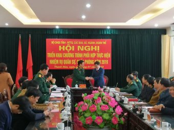 Sáng nay, ngày 17/1/2019, Bộ Chỉ huy quân sự tỉnh, Mặt trận tổ quốc, các Sở Ban ngành, Tỉnh đoàn và các tổ chức đoàn thể tỉnh Thanh Hóa phối hợp tổ chức Hội nghị triển khai thực hiện nhiệm vụ quân sự quốc phòng năm 2019, tham dự Hội nghị có đại diện lãnh đạo Quân khu 4, các đồng chí lãnh đạo 27 đơn vị trong tỉnh.