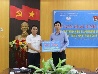 Nhằm đồng hành với thanh niên trong khởi nghiệp, lập nghiệp, phát triển kinh tế. Chiều ngày 13/11, Công ty Cổ phần thiết bị, vật tư y tế Thanh Hóa và BTV Tỉnh đoàn tổ chức Lễ bàn giao kinh phí hỗ trợ thanh niên bị ảnh hưởng lũ lụt phát triển kinh tế năm 2018.