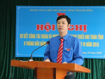 Ngày 12/10/2018 tại Trung tâm Hướng nghiệp, dạy nghề và GTVL thanh niên, Ban Chấp hành Tỉnh đoàn tổ chức Hội nghị sơ kết công tác Đoàn và phong trào thanh thiếu nhi 9 tháng đầu năm; triển khai nhiệm vụ 3 tháng cuối năm 2018. Tham dự Hội nghị có các đồng chí: Lê Văn Trung - Tỉnh ủy viên, UV BCH Trung ương Đoàn, Bí thư Tỉnh đoàn; đại diện Ban Dân vận Tỉnh ủy; đại diện lãnh đạo MTTQ Việt Nam tỉnh Thanh Hóa; các đồng chí trong BTV Tỉnh đoàn; Bí thư, Phó Bí thư các huyện, thị, thành đoàn và Đoàn trực thuộc; chủ tịch Hội LHTN các huyện, thị, thành phố.