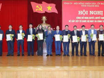 (Baothanhhoa.vn) - Chiều 26/2, Tỉnh ủy, HĐND, UBND tỉnh đã tổ chức hội nghị công bố nghị quyết, quyết định về sắp xếp tổ chức bộ máy và công tác cán bộ.