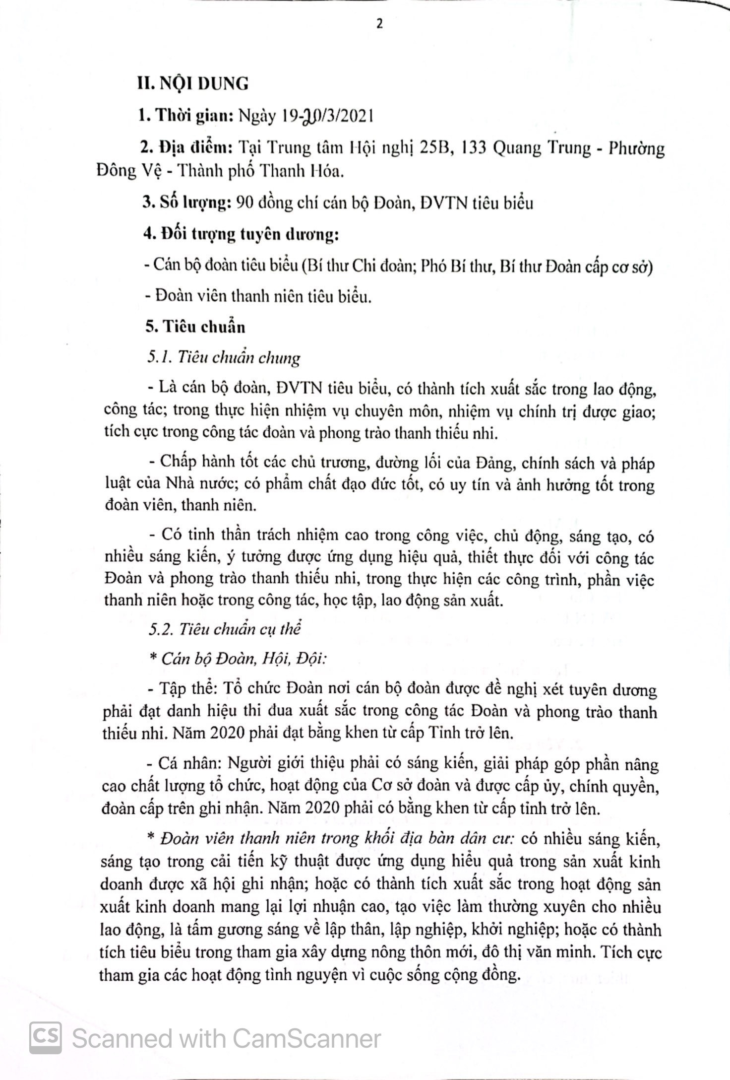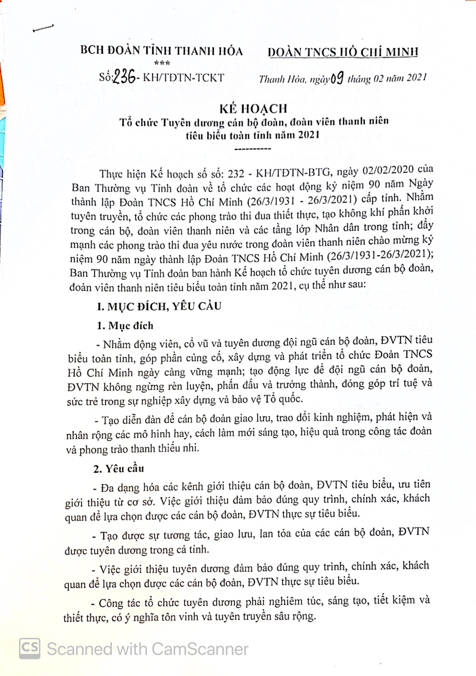 | Trích yếu | Kế hoạch tổ chức tuyên dương cán bộ Đoàn, đoàn viên thanh niên tiêu biểu toàn quốc năm 2021 |
