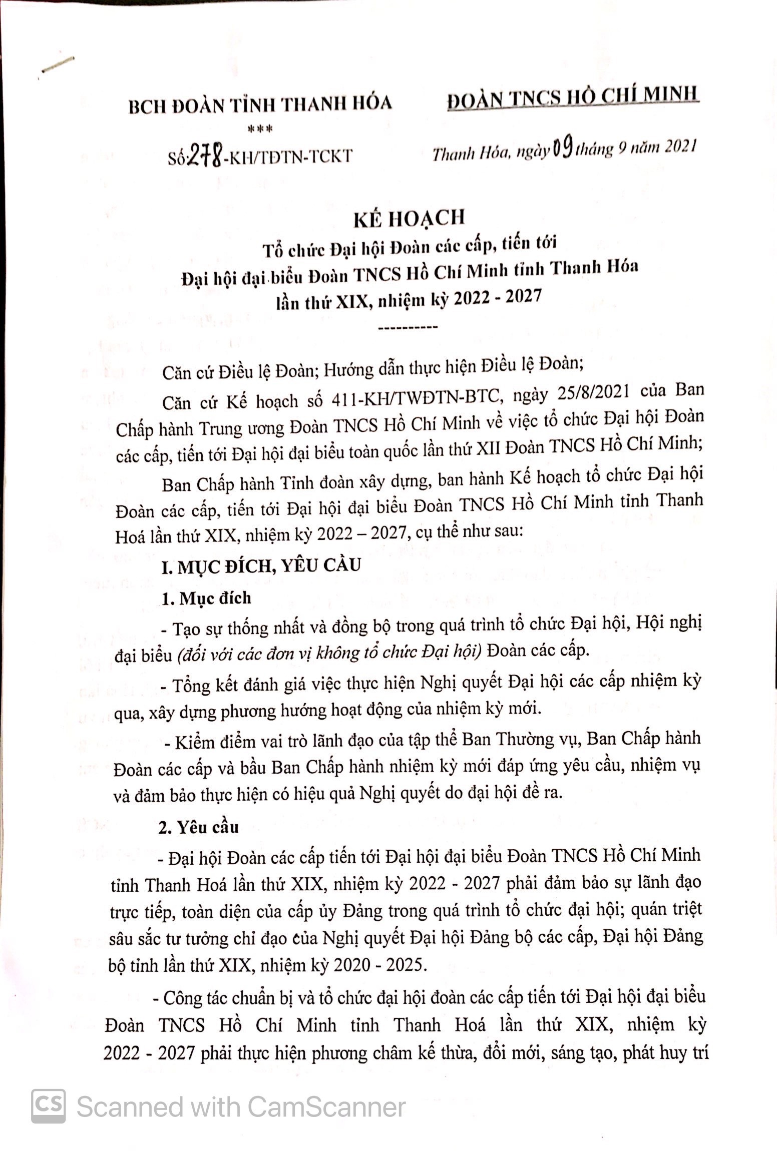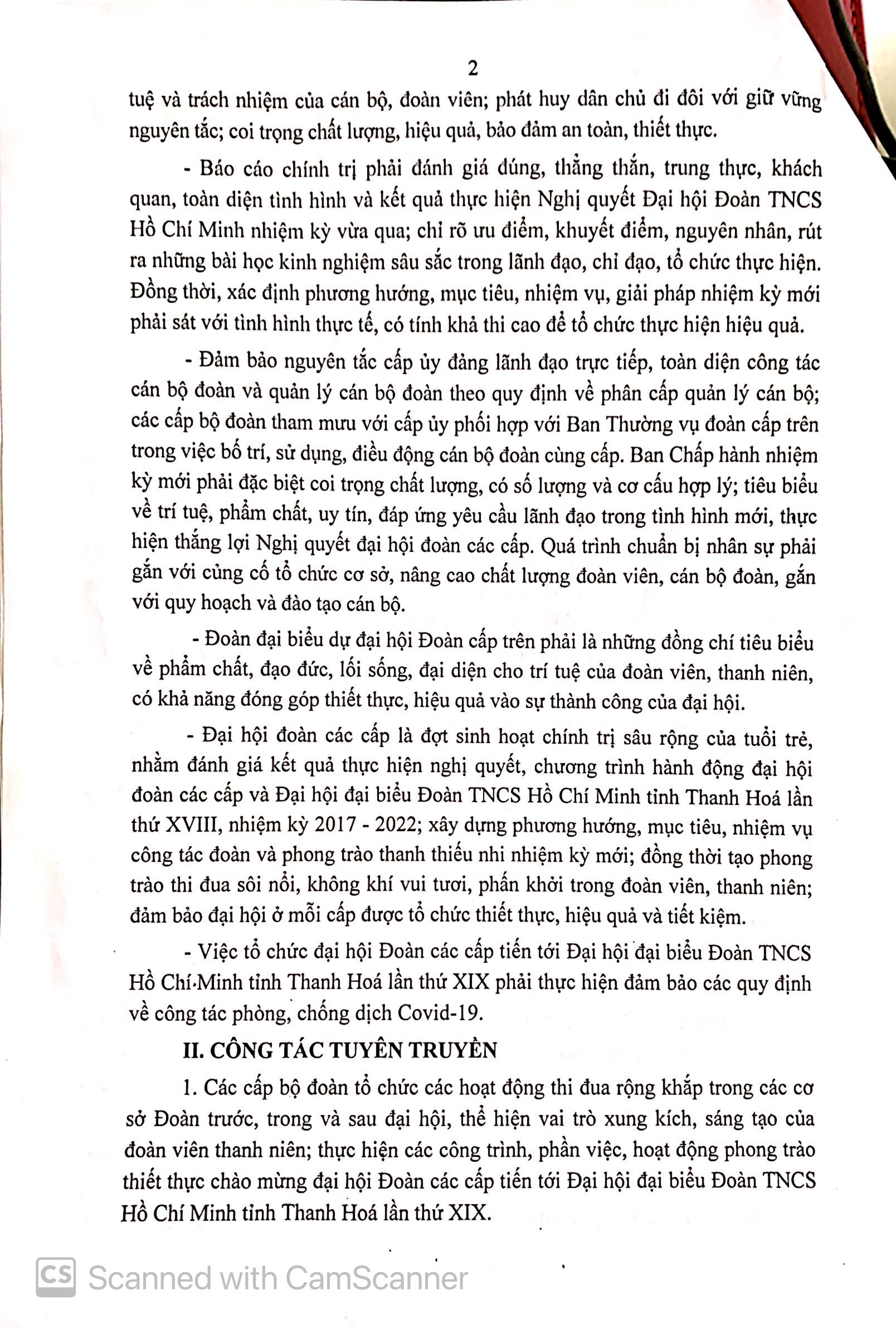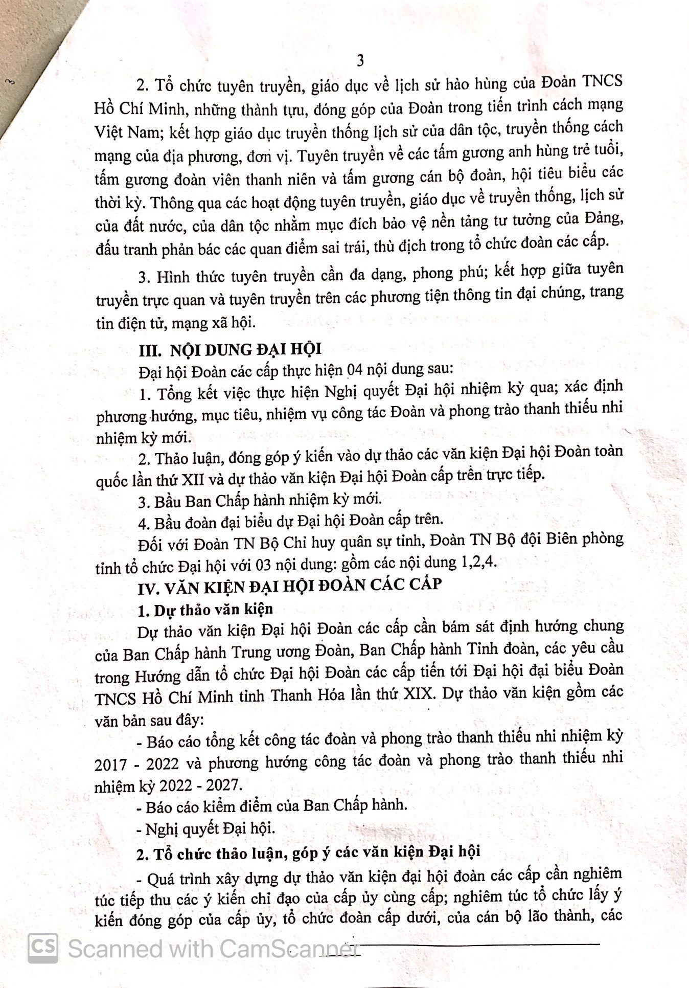| Trích yếu | Tổ chức Đại hội Đoàn các cấp tiến tới Đại hội đại biểu Đoàn TNCS Hồ Chí Minh tỉnh Thanh Hóa lần thứu XIX nhiệm kỳ 2022 - 2027 |